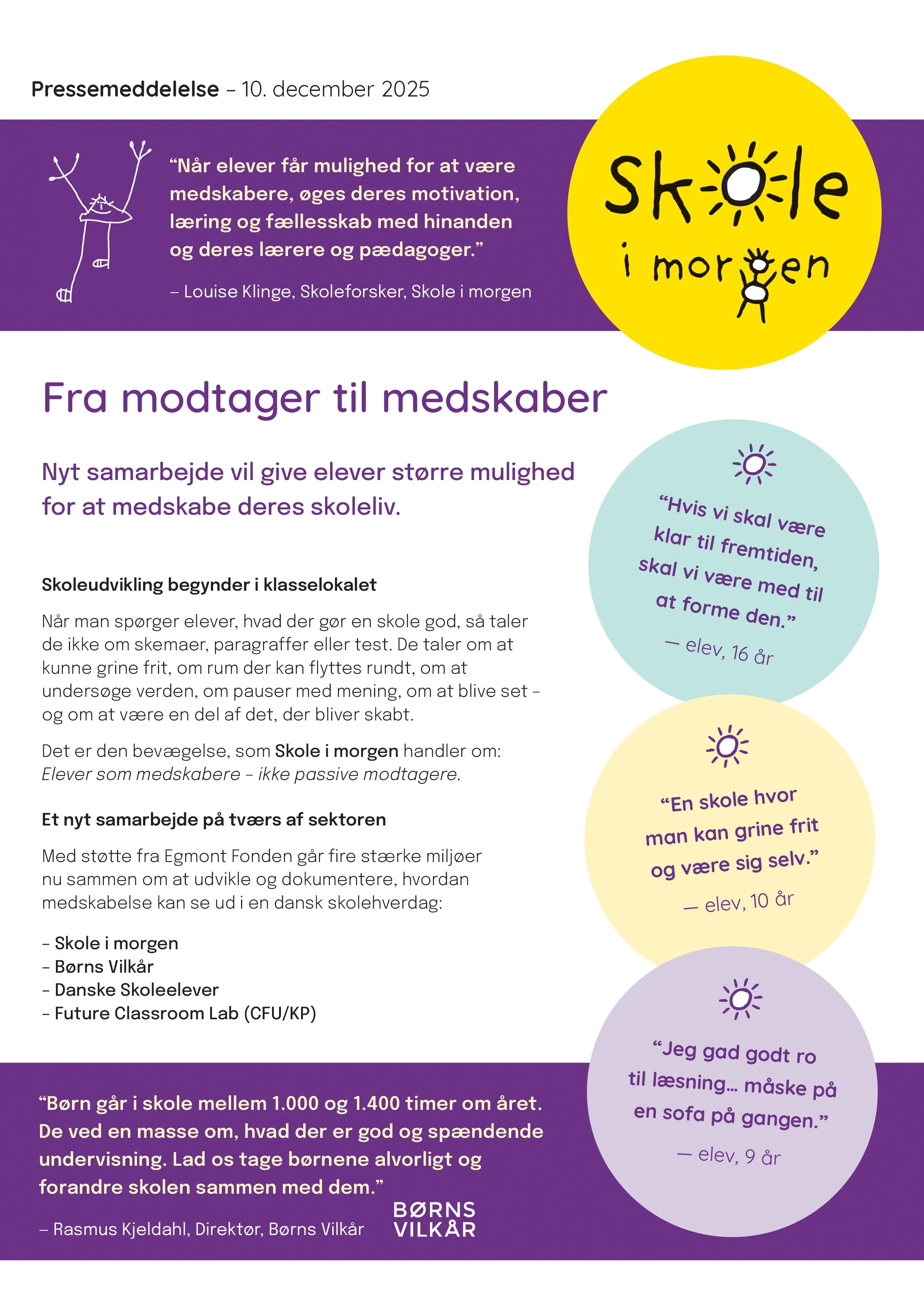 Med støtte fra Egmont Fonden går fire stærke miljøer nu sammen om at udvikle og dokumentere, hvordan medskabelse kan se ud i en dansk skolehverdag: